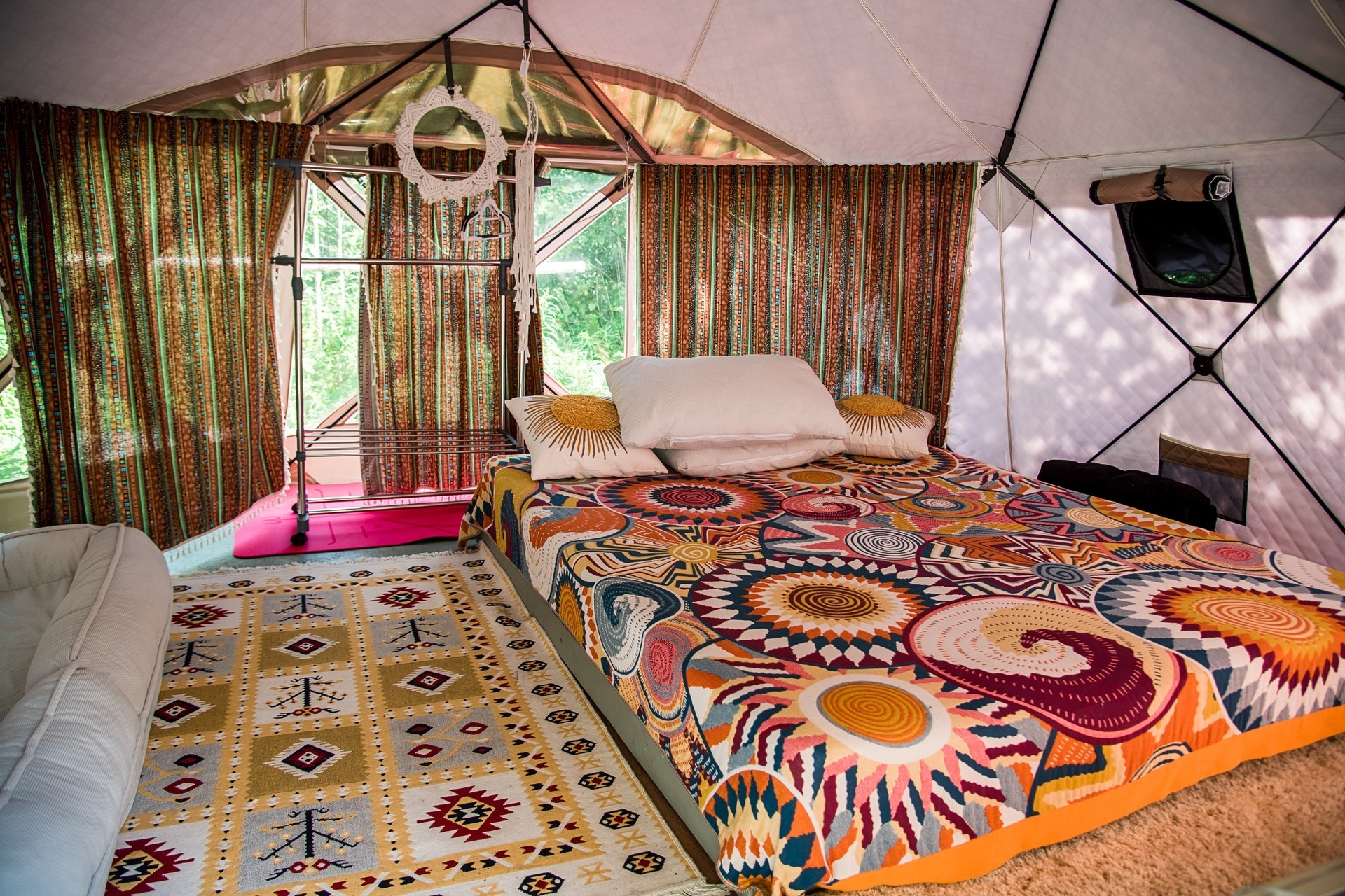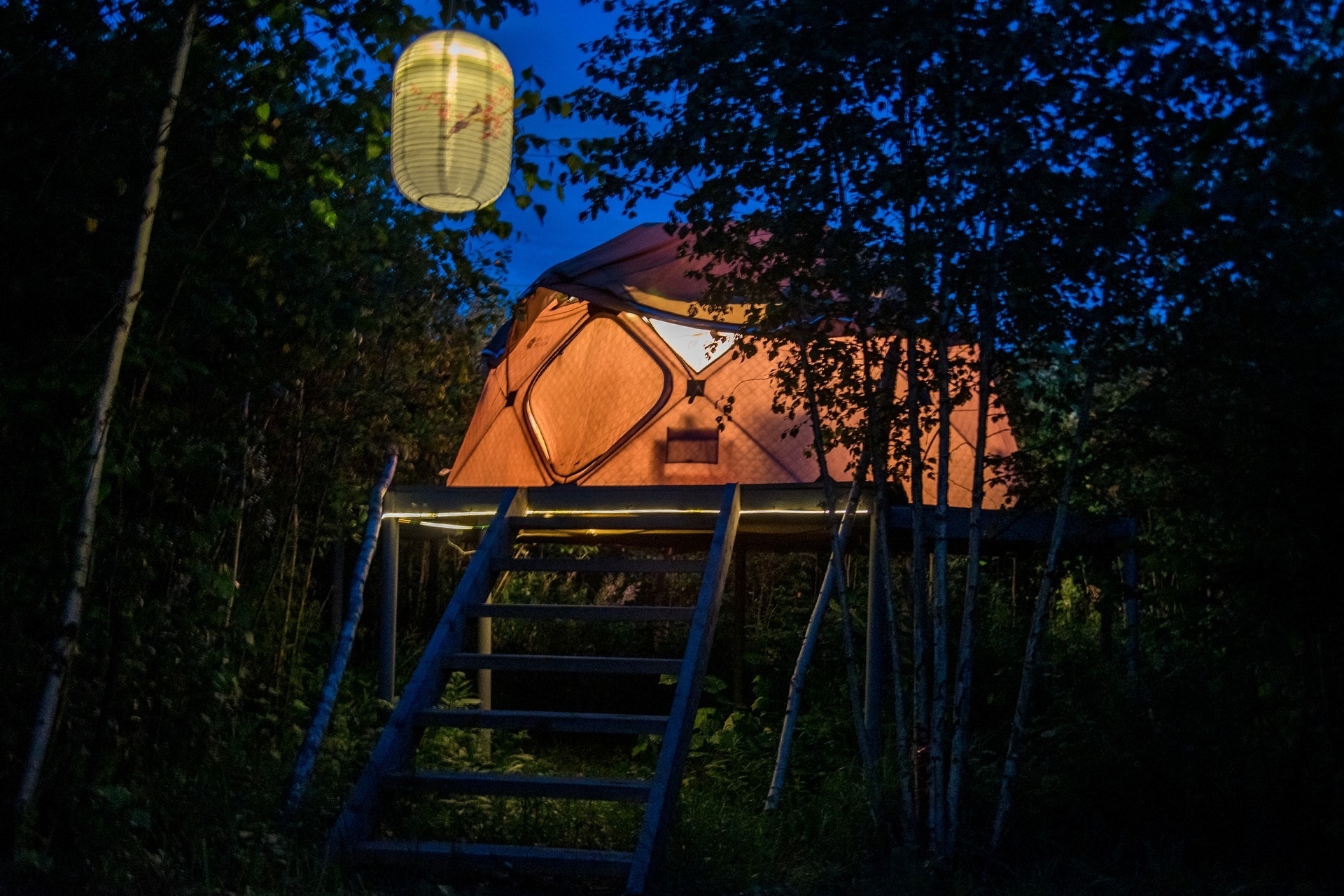 Самое романтичное место нашего глэмпинга. Купол установлен на уровне крон окружающих деревьев,